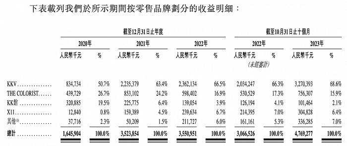 因其最近又向港股发起冲击,我们得知,2022年,和名创优品产品存在相似性的KK集团共计实现营收35.51亿元,净利润6186.4万;此外2023年前十个月为47.69亿元,净利润2.09亿元。