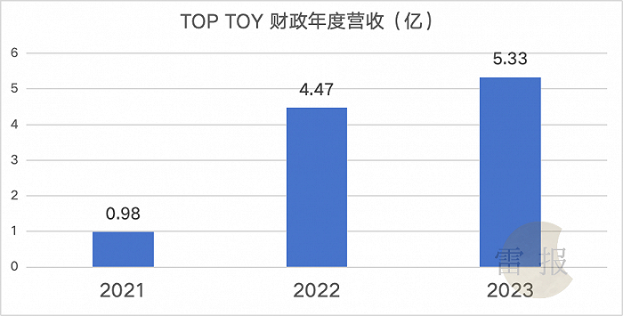 2021、2022、以及2023财政年度,TOP TOY的营收分别为0.98亿、4.47亿、5.33亿。