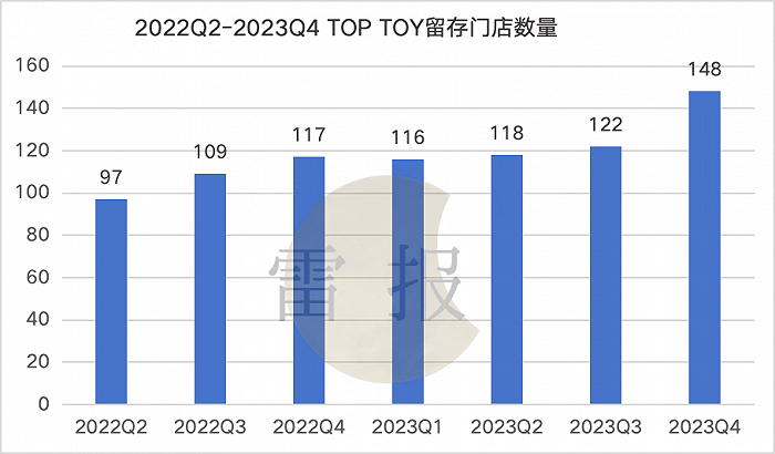2023年年底,坐拥148家TOP TOY门店使其到达了店铺规模的历史最高点,无论同比还是环比,增长都很“明显”。