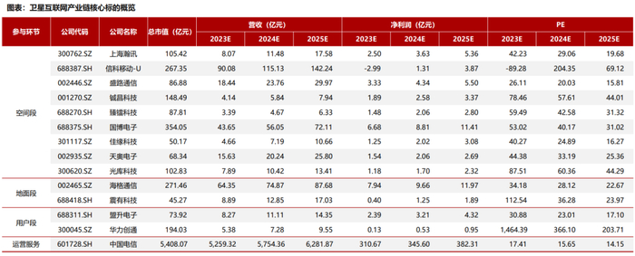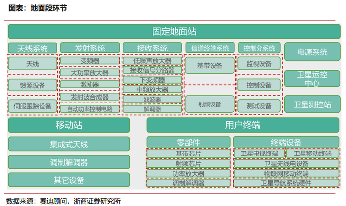 地面站主要包括信关站和测控站,并将与地面网络互联。根据赛迪顾问,地面设备在卫星产业链成本占比达到45%,价值量占比较高。