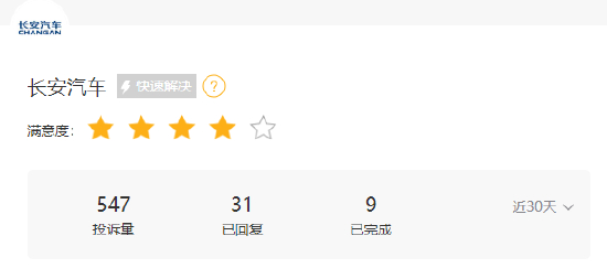新浪黑猫投诉平台数据显示,截至2024年3月13日,长安汽车共收到投诉547件,已回复31件,回复率5.67%;已完成9件,完成率0.18%。