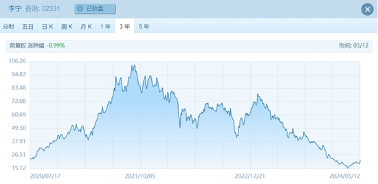 除了公司回购股份,李宁本人也在增持股份。香港联交所资料显示,2023年12月15日,李宁增持李宁公司70万股,每股作价19.0914港元,总金额约为1336.40万港元。增持后李宁最新持股数目约为2.77亿股,最新持股比例为10.56%。