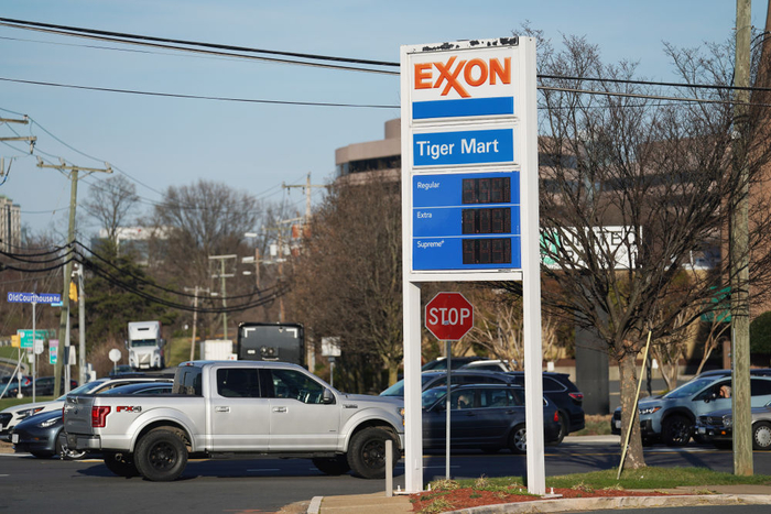 ↑3月12日,车辆停在美国弗吉尼亚州维也纳的一座加油站内。