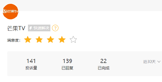 新浪黑猫投诉平台数据显示,截至2024年3月13日,芒果TV共收到投诉141件,已回复139件,回复率98.6%;已完成22件,完成率15.6%。
