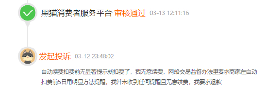 有投诉者称,自动续费扣费前无显著提示就扣费了,本无意续费,网络交易监督办法里要求商家在自动扣费前5日用明显方法提醒,却并未收到任何提醒且无意续费。