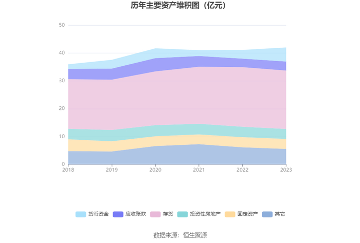 资产重大变化方面,截至2023年年末,公司货币资金较上年末增加60.84%,占公司总资产比重上升4.38个百分点;存货较上年末减少1.90%,占公司总资产比重下降2.04个百分点;长期待摊费用较上年末减少15.34%,占公司总资产比重下降0.60个百分点;投资性房地产较上年末减少3.93%,占公司总资产比重下降0.54个百分点。