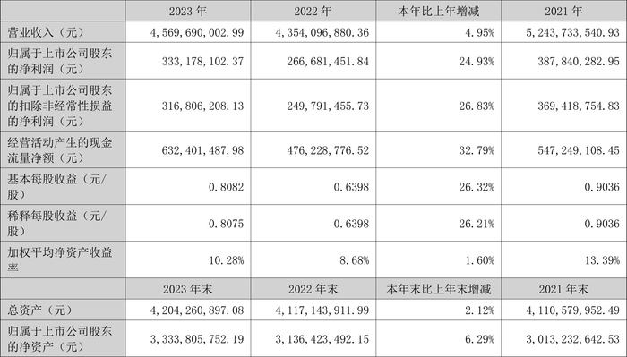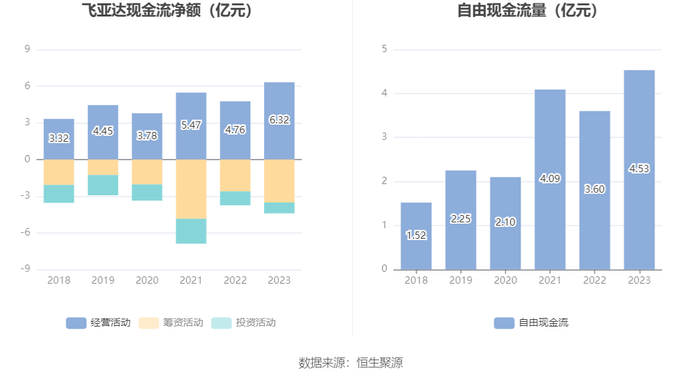 进一步统计发现,2023年公司自由现金流为4.53亿元,相比上年同期增长25.98%。