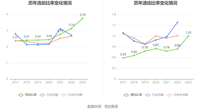 2023年,公司流动比率为3.76,速动比率为1.20。