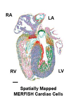 局部图显示MERFISH细胞可重复映射到不同的心脏发育的空间区域。