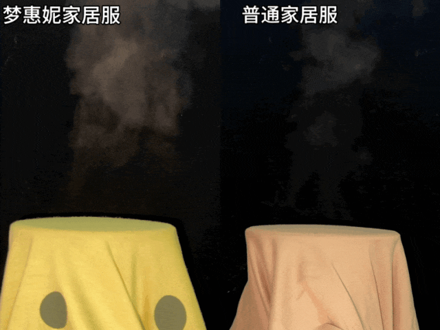 透气性和普通睡衣做了对比。明显,这套睡衣更加透气。