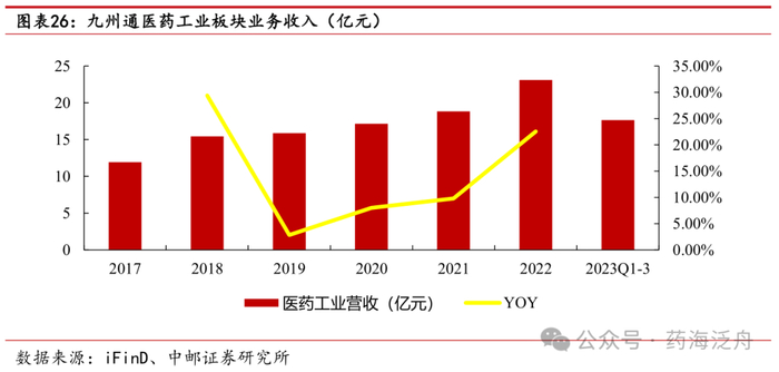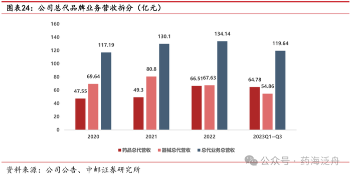 2023年前三季度,公司总代品牌推广业务(含药品及医疗器械)销售收入达119.65亿元,同比增长25.90%;毛利率为15.78%,毛利额为18.89亿元,同比增长41.49%,持续打造公司利润增长“第二曲线”,对公司业绩贡献度不断加大。