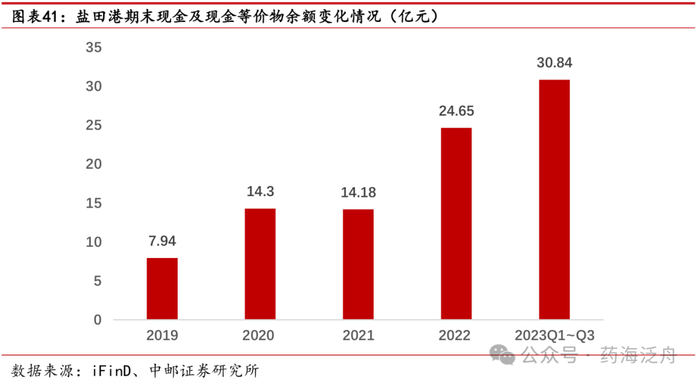 公司营运能力显著向好,2023年H1现金流净额首度回正。2019-2021年公司应收账款周转率由4.56上升至2022年的5.2;相对应地,2019-2021年公司应收账款周转天数由78.93天下降至2022年的69.20天。主要原因是公司医药分销业务的销售规模快速扩大,应收回款大幅增加,且公司为控制应收账款风险,逐步开始采取措施提升公司的销售回款,在年底加大应收账款的清收力度。同时,应收账款周转加速也引致了公司经营性现金净流入的大幅增加,由2018年的12.22亿元增加至2022年的39.86亿元,2022年公司经营活动产生的现金流量净额较上年同期增长15.24%,其中第四季度经营性现金流量大幅改善,现金回款大幅增加,单季度经营性现金流量净额达54.58亿元。