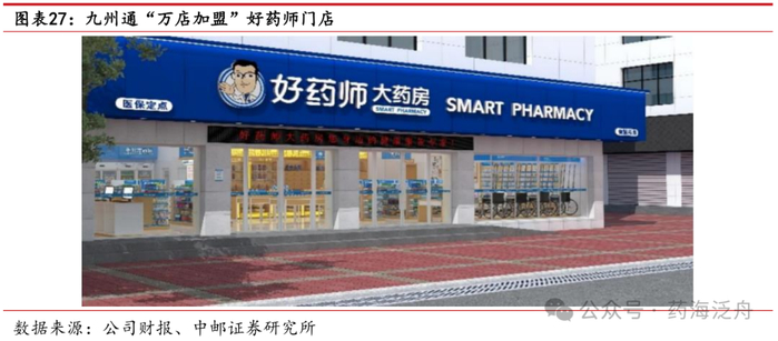 “万店加盟”强力推进,2025年门店数量有望突破3万家。新零售业务是公司新三年战略业务的重要组成部分。公司充分利用现已建立的供应链优势,通过“万店加盟”、“批零一体化”及线上线下相结合的模式,赋能公司零售业务,触达C端用户,拓展公司数字化零售与万店加盟。同时,公司致力于“新零售”场景核心系统的研发,打造九州万店数字化平台,通过零售ERP、医保接口、门店通、智药通、CRM及直播等数字化工具,为加盟药店提供各种数字化赋能服务,包括标准化开店、管理培训、城市合伙人等人员管理,采购分析、销售诊断、库存优化等商品管理分析,以及医保履约、商保引流、O2O电商、社区团购、健康管理等经营场景延伸,补齐单体药店/中小连锁的经营短板,全面赋能单体药店、中小连锁数字化。