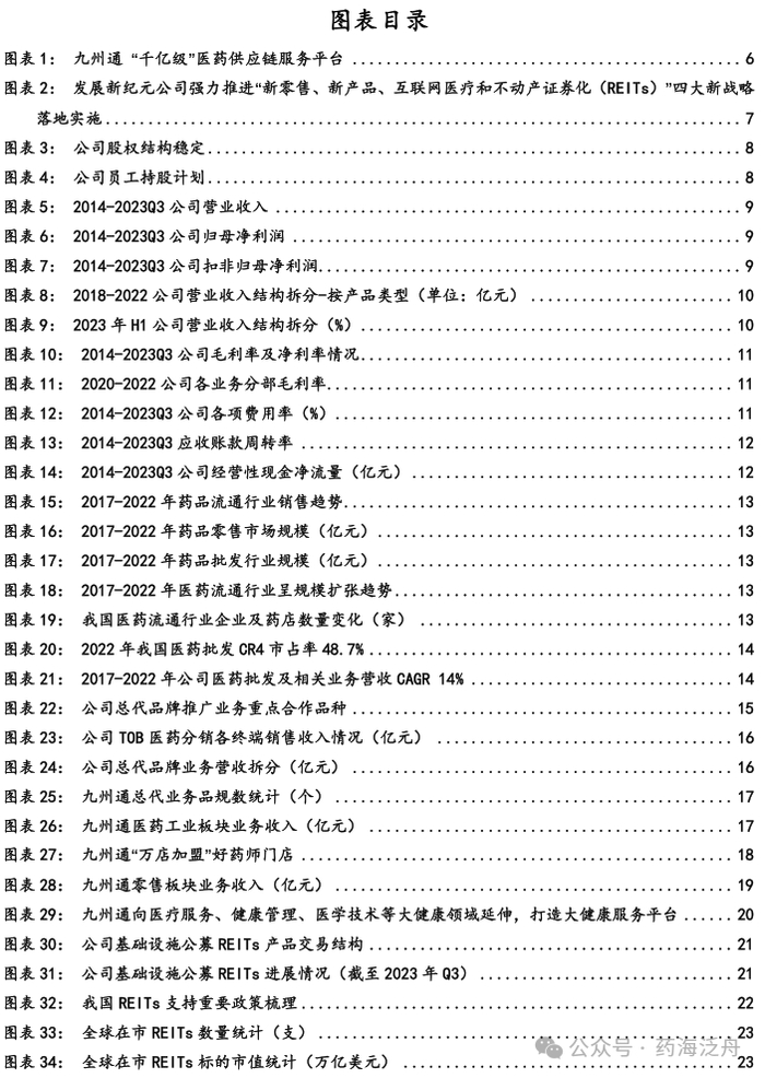 申报工作步入正轨,有望成为国内医药行业首单公募REITs。截至2023年末,公司已完成项目申报初稿,根据湖北省发改委的指示,已于2023年10月向国家发改委正式提交申报材料;同时,公司已全资设立湖北九州产业园区运营管理有限公司,拟作为未来基础资产的运营管理机构,为基础资产提供运营管理服务;此外,九州通物流已全资设立武汉九州首瑞供应链服务有限公司,后续拟将首批入池医药仓储物流资产重组注入九州首瑞,并将持有该公司100%的股权转让给公募REITs。