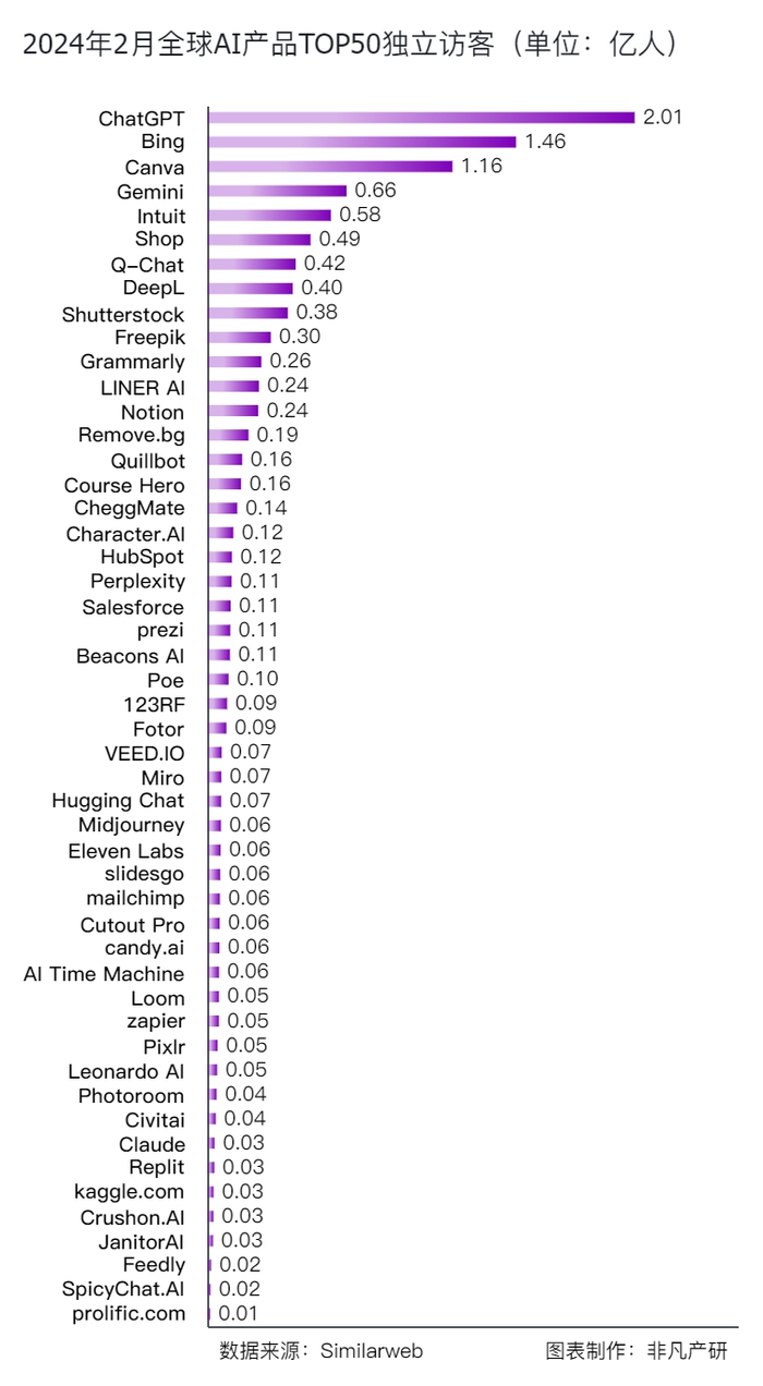非凡产研:2024年2月全球AIGC行业月报-流量篇