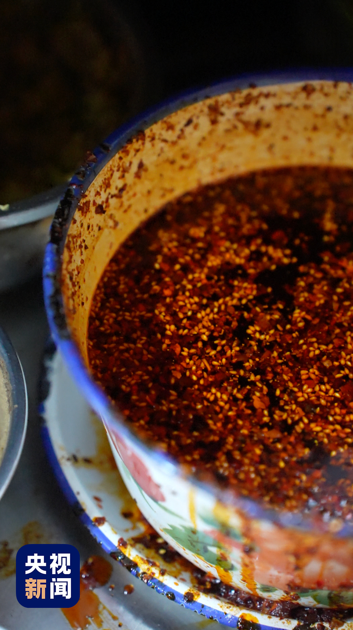 对于油泼辣子的制作方法,每家每户都有自己的秘笈:通常用八角、香叶、花椒等香料磨粉调味,加上些许核桃碎、白芝麻、糖,再用葱段、洋葱、香菜等炸香的热油一泼,椒香四溢,辣味香浓,一瞬间把味蕾拿捏住。