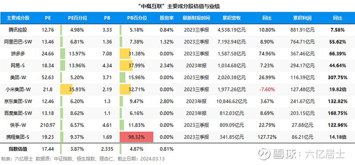 中概互联:时间磨平未知,业绩见底回升(61指数估值03.14)