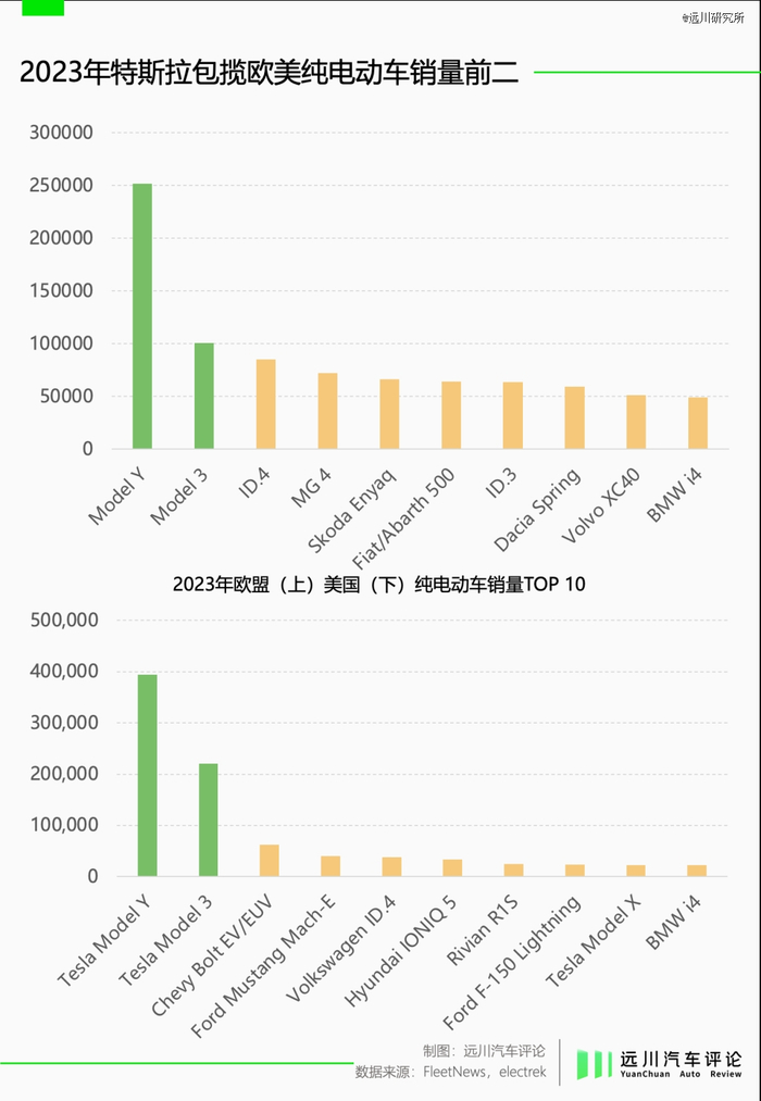 2023年欧美纯电动车总销量虽然仍保持增长,但增速明显放缓,美国第四季度纯电动车销量环比增速仅1.3%,远弱于Q3、Q2的5%和15%[5];欧盟由于德国补贴提前结束,去年12月纯电销量出现自2020年4月以来首次同比下滑。