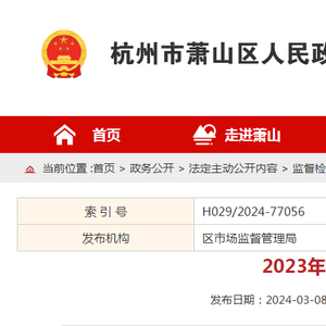 【杭州市萧山区】​2023年度省、市、区产品质量监督抽查结果通报