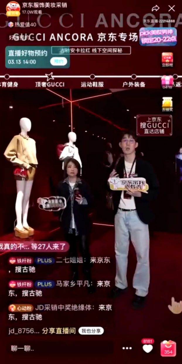 3月11日,“Gucci Ancora 古驰安可拉红”线下空间北京站于三里屯开启,并为京东用户开设特别专场,由京东邀请的百余位京东用户前往参与观展,近距离感受古驰2024春夏新款。