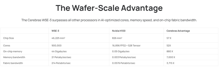 虽说将晶圆大小的芯片和单个英伟达H100 GPU相比较并不公平,不过若从数据传输速度的角度来看,不将晶圆切割成单独的芯片确实有它的优势。