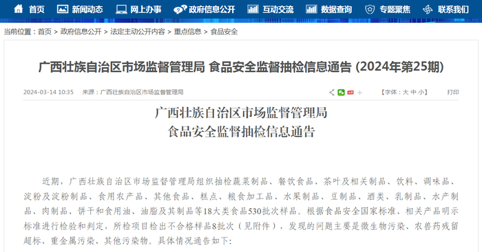 广西壮族自治区市场监督管理局食品安全监督抽检信息通告 (2024年第25期)