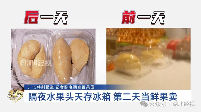百果园规定,对切开后当日未售完的水果,门店要么向公司报损,要么自行消化。百果园武汉银海雅苑门店内也贴有“绝不售卖隔夜水果”的标签。但真实情况又如何呢?
