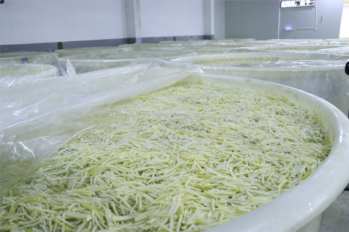 经过长达一年的反复试验,李任发现粗纤维≤10%、酸度在0.6-1.6之间、每100克含水量≤94克、色泽呈乳白色或浅黄色、形态在3-8厘米的长条状酸笋,品质和口感更佳,“臭”得更受消费者喜爱。