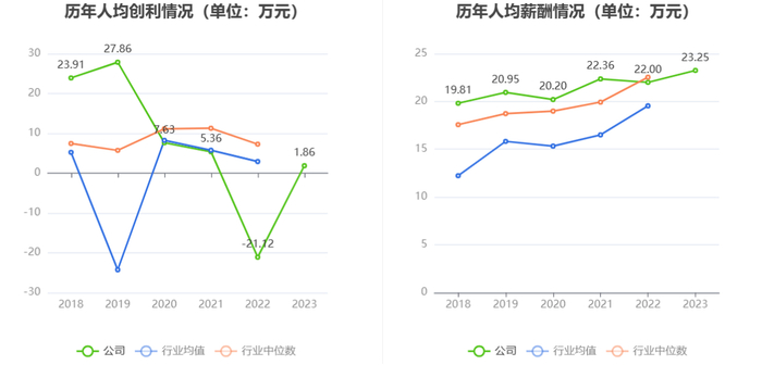 截至2023年末,公司员工总数为960人,人均创收86.33万元,人均创利1.86万元,人均薪酬23.25万元,较上年同期分别增长47.55%、108.81%、5.71%。
