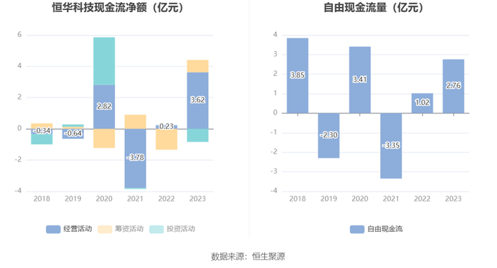 进一步统计发现,2023年公司自由现金流为2.76亿元,相比上年同期增长169.76%。