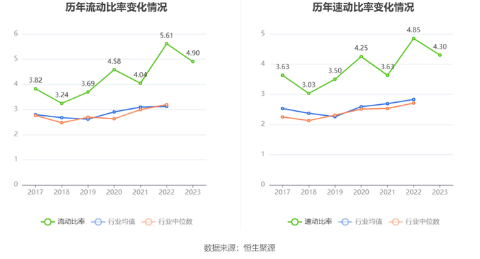 2023年,公司流动比率为4.90,速动比率为4.30。
