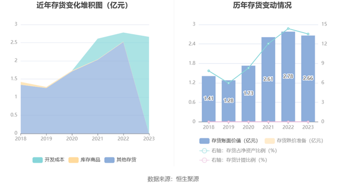 从存货变动来看,截至2023年年末,公司存货账面价值为2.66亿元,占净资产的13.54%。根据财报,公司本期没有计提存货跌价准备。