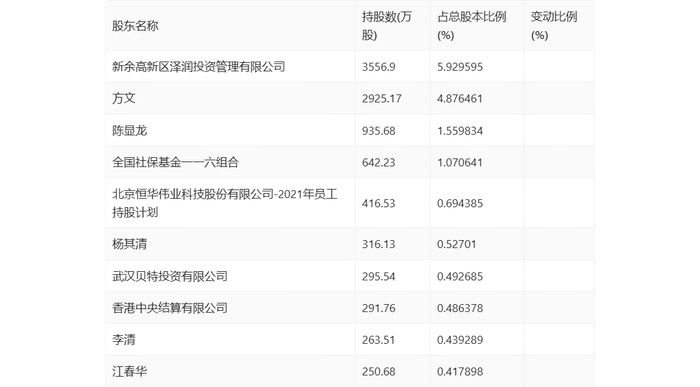 年报显示,2023年年末公司十大流通股东中,新进股东为武汉贝特投资有限公司、李清、江春华,取代了三季度末的凌久华、平安资管-工商银行-鑫福34号资产管理产品、美誉鹏程8号私募证券投资基金。在具体持股比例上,香港中央结算有限公司持股有所下降。
