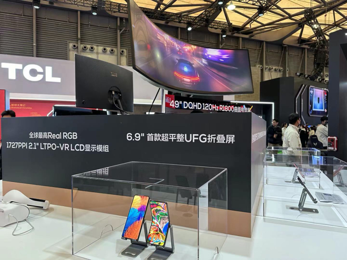 TCL两大主体TCL实业和TCL科技聚焦智能终端、半导体显示、新能源光伏三大核心产业,携37个品类、超150款产品共同参展,包括全球首款量产的百吋万级分区QD-Mini LED电视TCL X11H、163吋巨幕电视、全球首款印刷OLED笔电,以及全球首发的158吋超高清、零拼缝电子黑板等前沿科技产品。