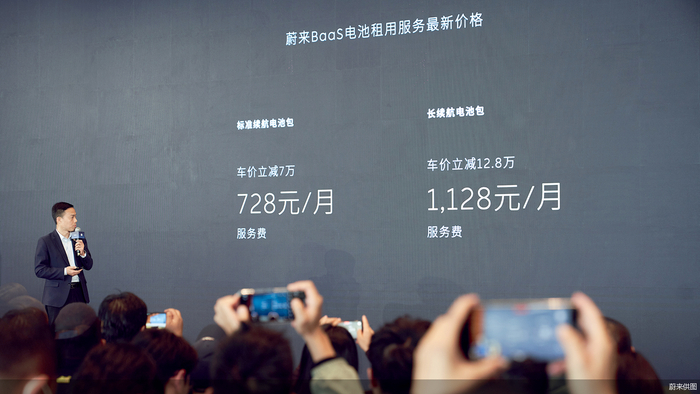 随着长寿命解决方案的发布,蔚来也启动了BaaS业务的调整。3月14日,蔚来发布全新BaaS电池租用服务。跟此前的服务价格相比,标准续航电池包租用服务费从980元/月调整至728元/月,长续航电池包租用服务费从1680元/月调整至1128元/月,价格大幅度下调。