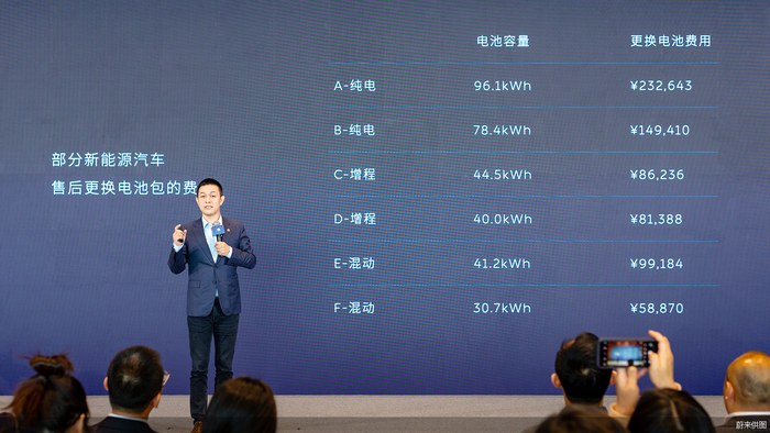 事实上,面对电池出保,如果消费者想要更换电池将支付高昂成本。在蔚来方面公布的部分新能源汽车售后更换电池包费用明细中,一款电池容量为30.7千瓦时的混动车型,更换电池的费用为5.58万元,但这已是更换成本最低的一档。电池更换价格最高的一款电池容量为96.1千瓦时的纯电动车型,费用超过23万元。为此,蔚来提出长寿命电池解决方案。