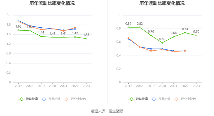 2023年,公司流动比率为1.37,速动比率为0.70。