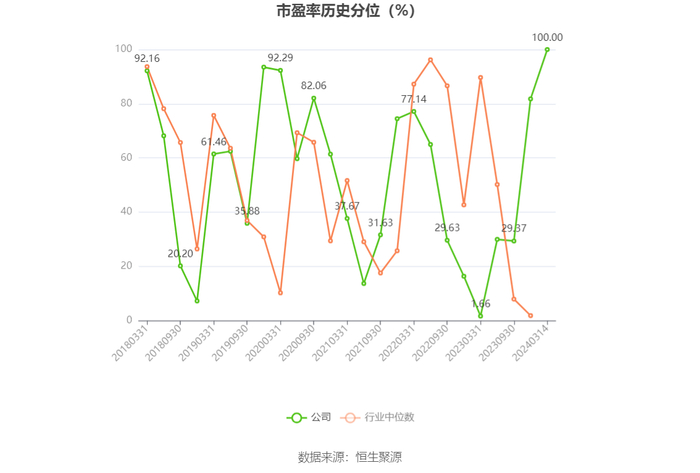 市盈率为负时,不显示当期分位数,会导致折线图中断。