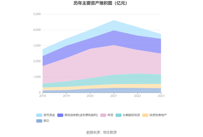 资产重大变化方面,截至2023年年末,公司货币资金较上年末减少45.44%,占公司总资产比重下降5.05个百分点;其他应收款(含利息和股利)较上年末增加3.06%,占公司总资产比重上升3.40个百分点;投资性房地产较上年末增加8.02%,占公司总资产比重上升1.27个百分点;存货较上年末减少11.98%,占公司总资产比重下降0.45个百分点。