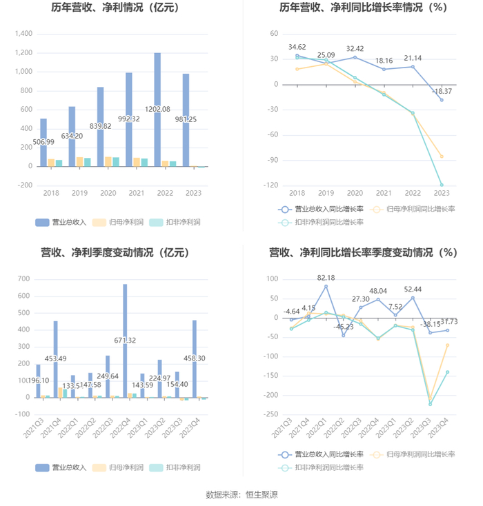 进一步统计发现,2023年公司自由现金流为-7.67亿元,上年同期为121.18亿元。