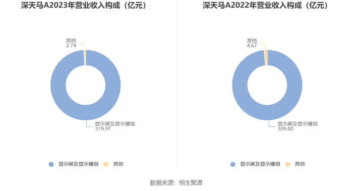 分产品来看,2023年公司主营业务中,显示屏及显示模组收入319.97亿元,同比增长3.28%,占营业收入的99.15%。