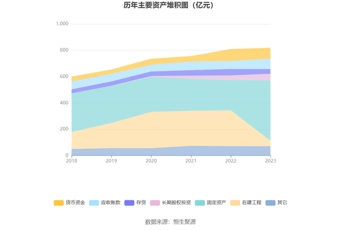 资产重大变化方面,截至2023年年末,公司在建工程较上年末减少85.33%,占公司总资产比重下降28.66个百分点;固定资产较上年末增加99.90%,占公司总资产比重上升27.72个百分点;应收账款较上年末增加28.10%,占公司总资产比重上升2.00个百分点;长期股权投资较上年末增加41.52%,占公司总资产比重上升1.73个百分点。