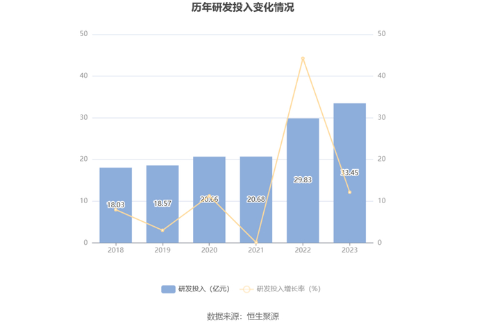2023年全年,公司研发投入金额为33.45亿元,同比增长12.13%;研发投入占营业收入比例为10.37%,相比上年同期上升0.88个百分点。此外,公司全年研发投入资本化率为9.27%。