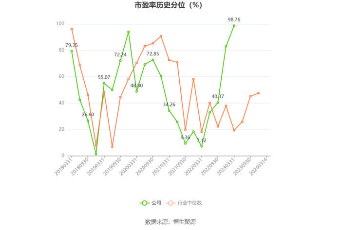 市盈率为负时,不显示当期分位数,会导致折线图中断。