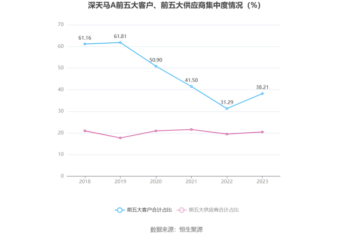 报告期内,公司前五大客户合计销售金额122.25亿元,占总销售金额比例为38.21%,公司前五名供应商合计采购金额43.72亿元,占年度采购总额比例为20.45%。