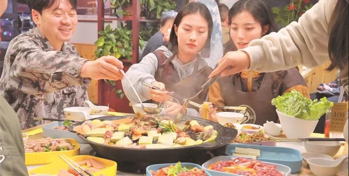 各家烙锅店灯火通明、热气升腾。锅上各色食物滋滋作响、活色生香。食客们浇油翻面、大快朵颐,香辣爽口的滋味激荡起春天里的幸福涟漪。