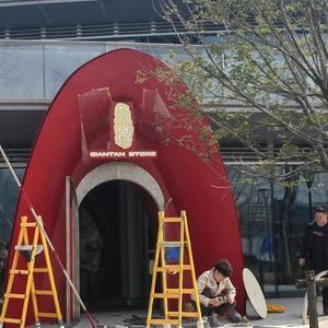 图说:3月9日,施工人员在餐馆门口施工。
