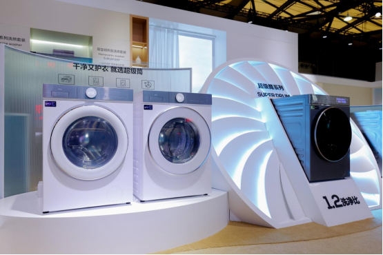 在智能家居领域,“超级筒”洗衣机以硬件科技,实现1.2洗净比,为消费者带来全新衣物洗净体验。其内筒直径达到了540mm,创新设计的鱼鳍状提升筋数量翻倍至6根,并结合海波形纹路,实现了洗涤效果新突破,在全面提升衣物清洁力度的同时做到更护衣。