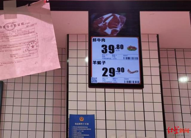 ↑太康县一超市内的鲜牛肉价格