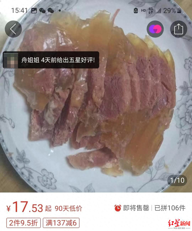 李先生介绍,自己在新乡浚县经营一家小商店,平日售卖烟酒和一些零食。网购了上述牛肉后,和朋友聚餐品尝后发现味道不对,“都是真空包装的,但有的捏上去软软的”。朋友也说“牛肉没有这么便宜的”,“菜市场卖的卤牛肉都是五六十一斤。”